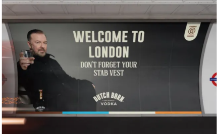 According to Gervais, the darkly satirical Dutch Barn posters – besides the stab-vest one, also lines like “One day you’ll be underground for good,” “Drugs this good are usually illegal,” and “Dutch Barn – your Tube driver’s favourite drink in the morning” – were rejected by TfL.